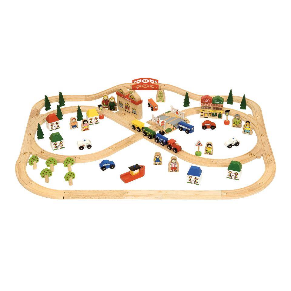 Bigjigs Toys Wooden City Train and Table 62 Piece Set
