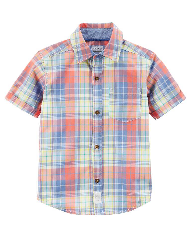 Оригинал Carter's Orange/Blue/Yellow Plaid Button Down Shirt - Toddler