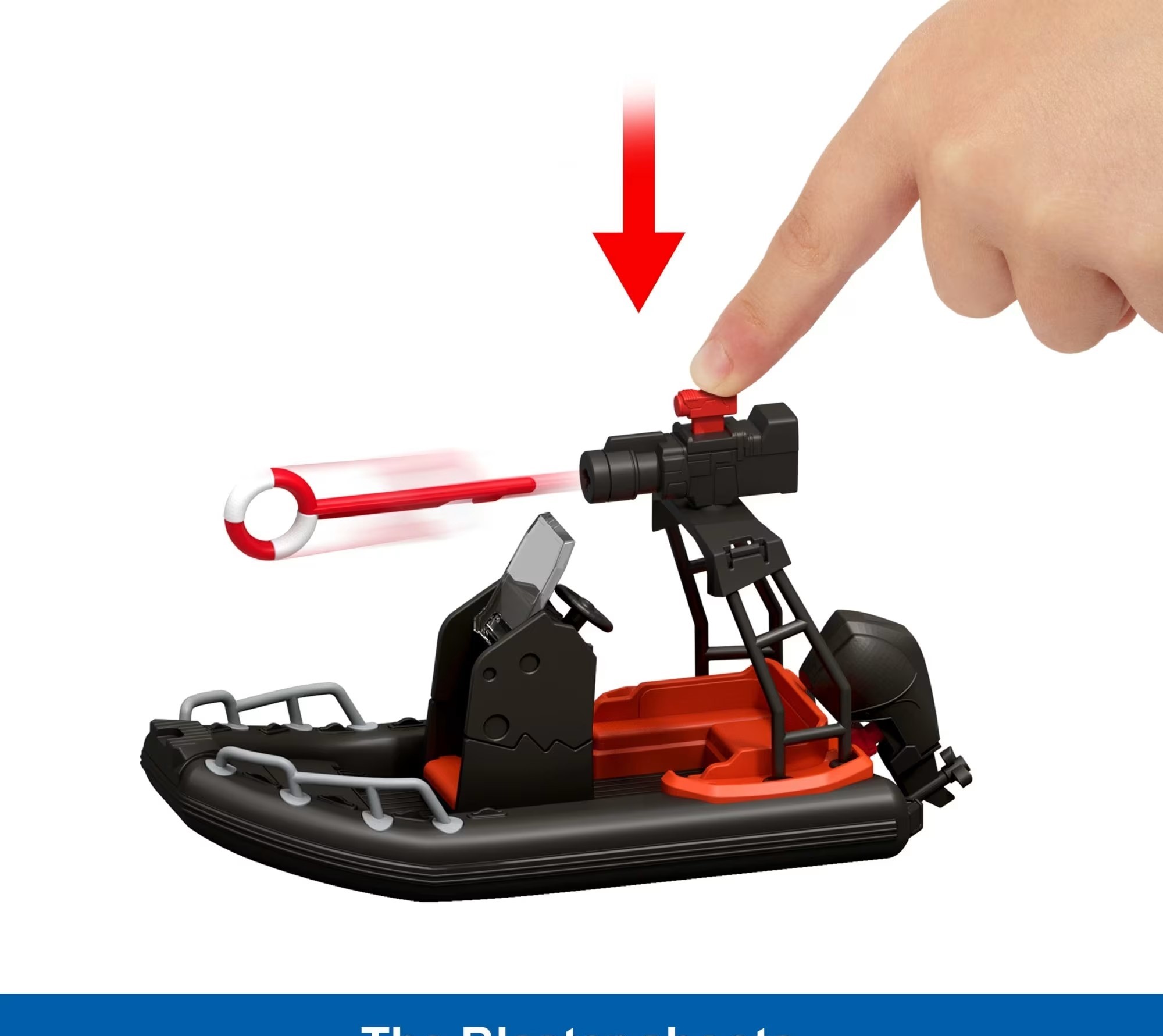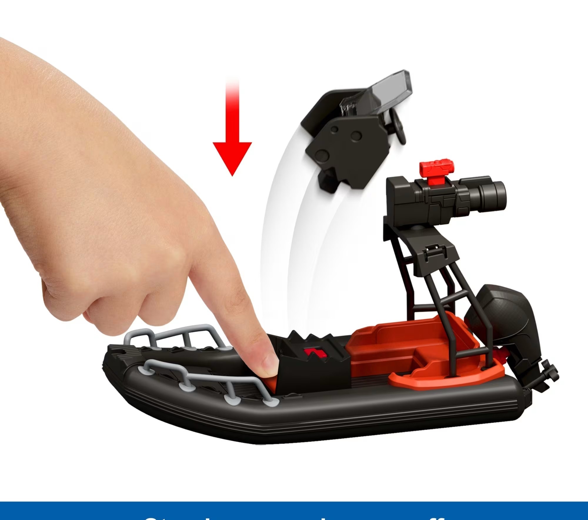 Набор включает в себя транспортное средство на плоту, фигурку Distortus rex, фигурку Рубена Дельгадо, фигурку Изабеллы Дельгадо и маленькую фигурку Aquilops. Это первый раз, когда Aquilops появился в линейке Jurassic World! Машина оснащена бластером с двумя различными вариантами снарядов, а также отрывной.