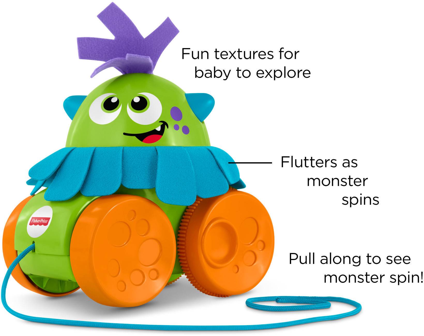Оригинал Fisher-Price Walk and Whirl Monster Pop and Spin Pull-Along Toy