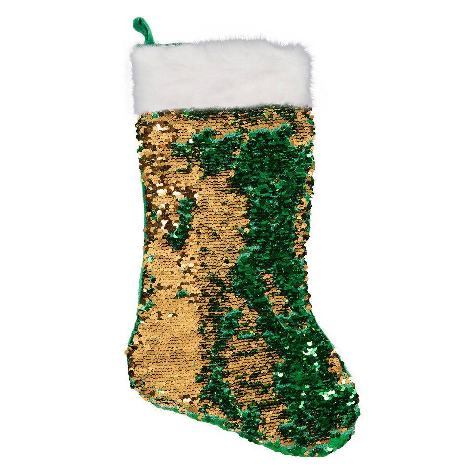Green and Gold Reversible Sequin Christmas Stocking
