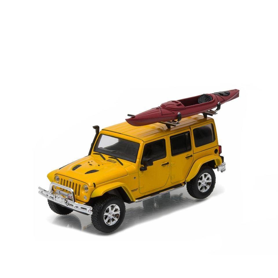 GreenLight Collectibles 1:43 2016 Jeep Wrangler Unlimited - Metallic Yellow with Winch, Snorkel and Kayak