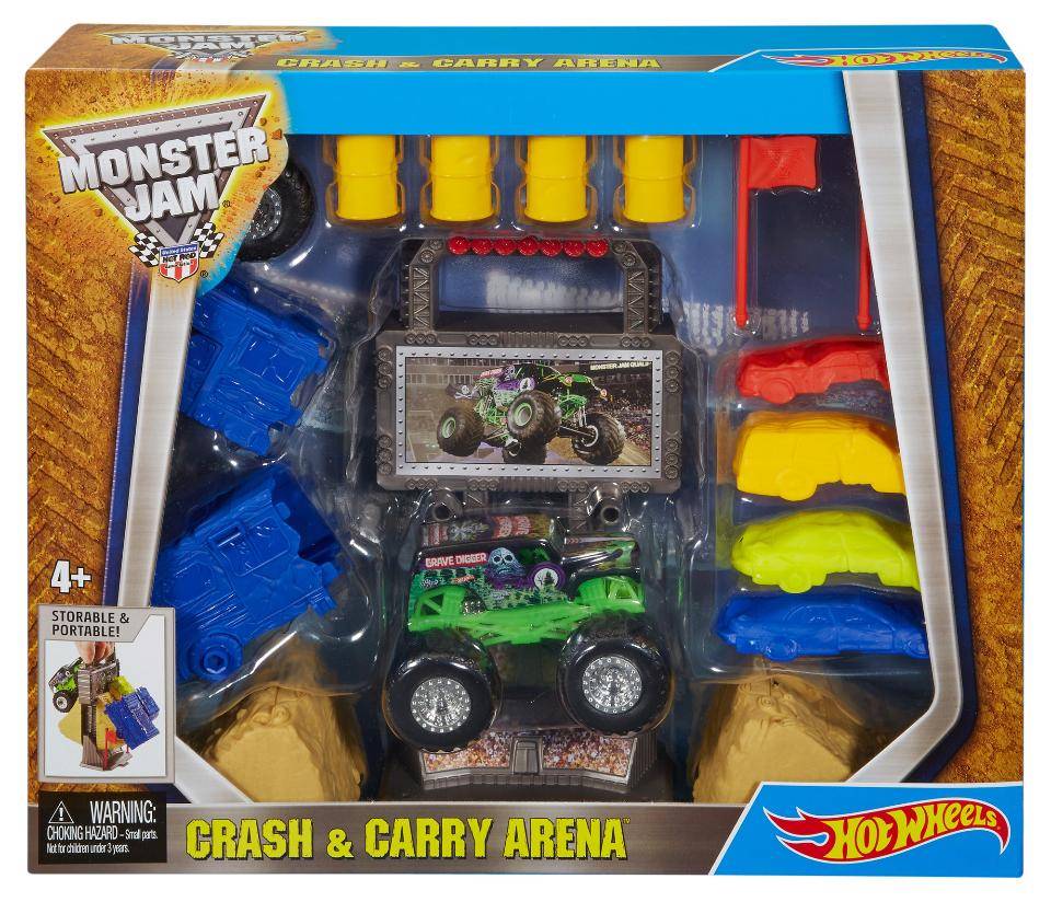 Оригинал Hot Wheels Monster Jam 1:64 Scale Crash and Carry Arena Playset (Colors/Styles May Vary)