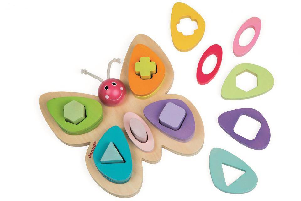 Оригинал Janod I Wood Butterfly Shape Sorter Wooden Activity Set - 16 Piece