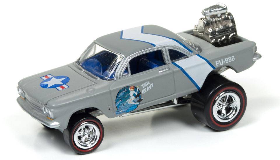Johnny Lightning Street Freaks Zinger Diecast Car - Cool Gray Flat with Graphics 1962 Chevrolet Corvair