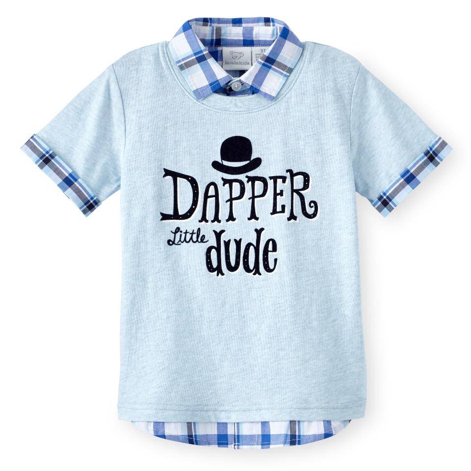 Оригинал Koala Kids Aqua/Plaid "Dapper Little Dude" Screen Print Faux Layered Top - Toddler