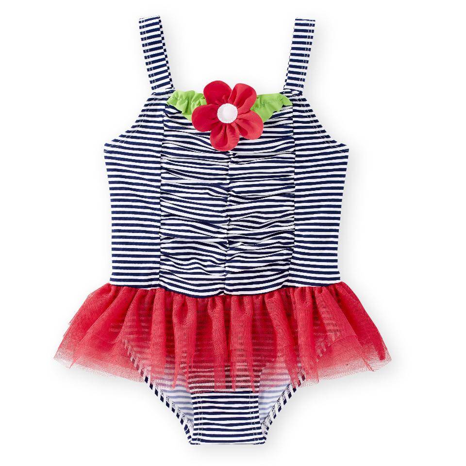 Оригинал Koala Kids Red/Black Ruched Tutu Swimsuit with Flower Detail - Toddler
