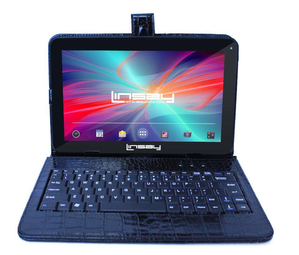 Оригинал LINSAY 10.1 inch New Quad Core 8GB Tablet with Black Crocodile Style Keyboard Exclusive Bundle