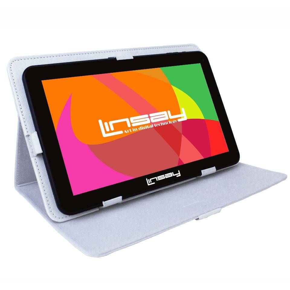 Оригинал LINSAY 10.1 inch Quad Core 1024 x 600 HD Screen Tablet with White Red Square Leather Protective Case