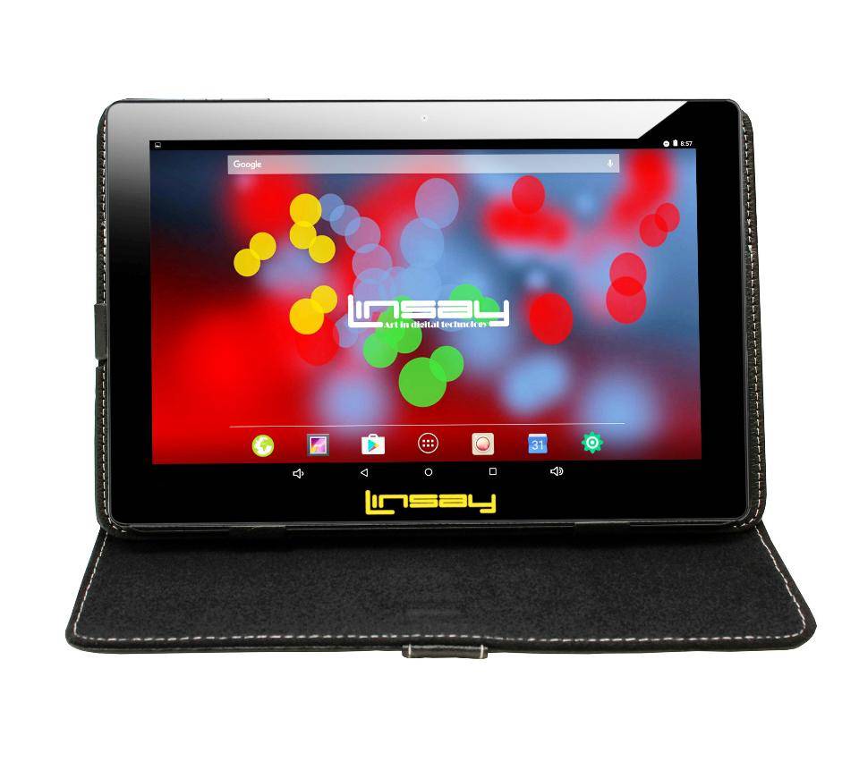LINSAY 10.1 inch Quad Core 1280 x 800 IPS Screen Tablet 16GB with Black Leather Protective Case