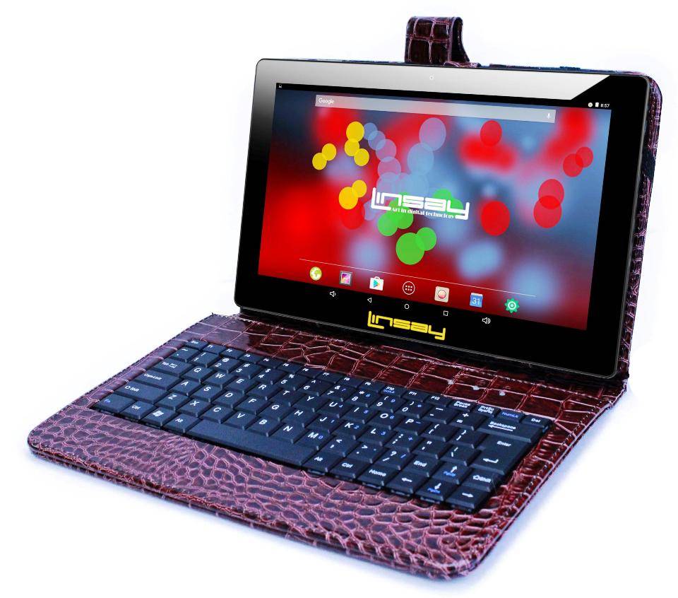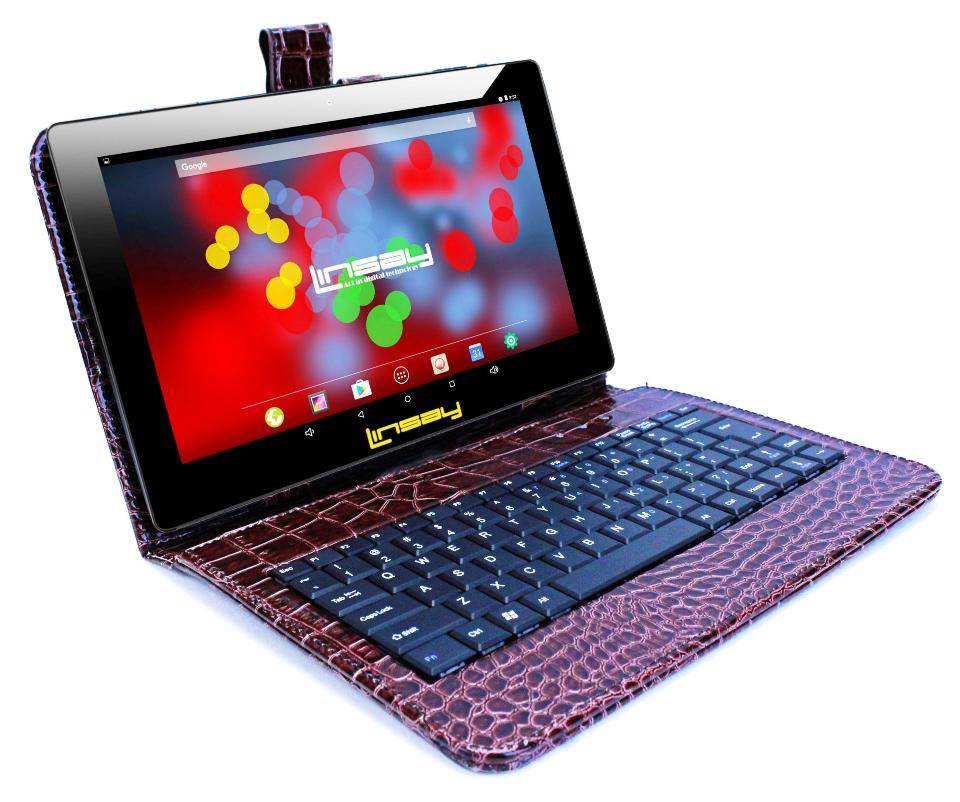 Оригинал LINSAY 10.1 inch Quad Core 1280 x 800 IPS Screen Tablet 16GB with Brown Crocodile Style Leather Keyboard Case