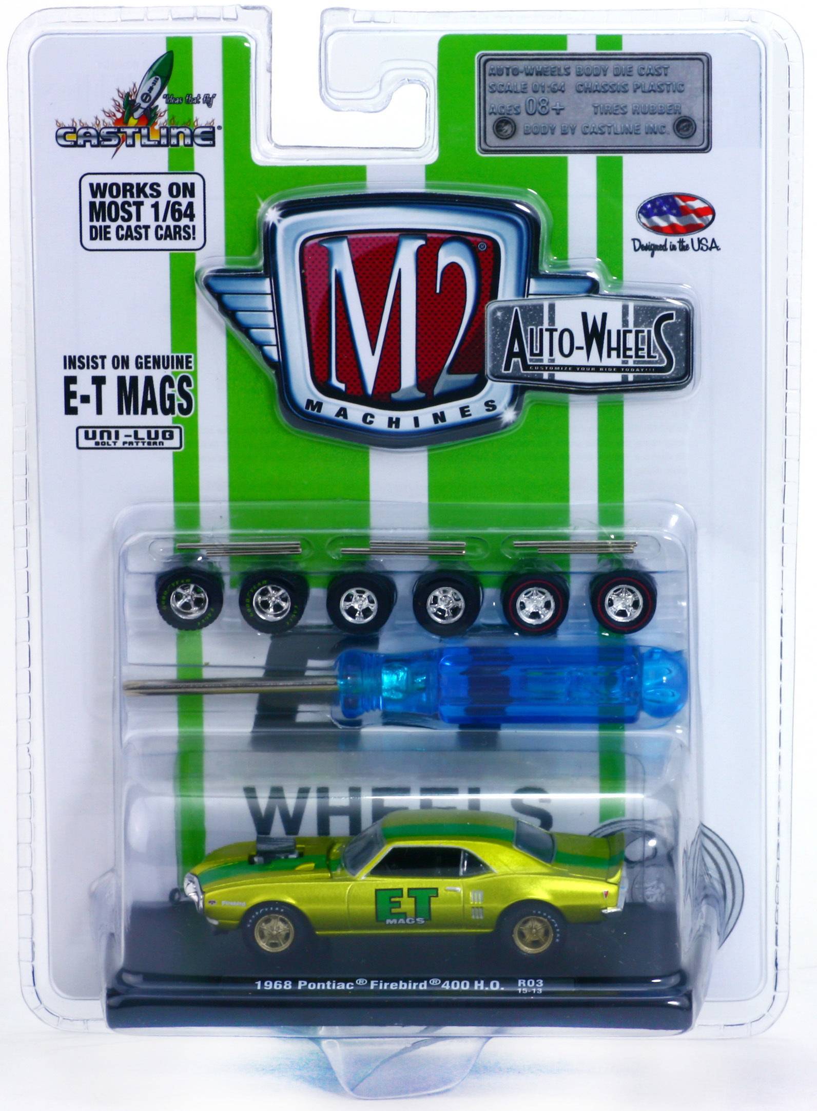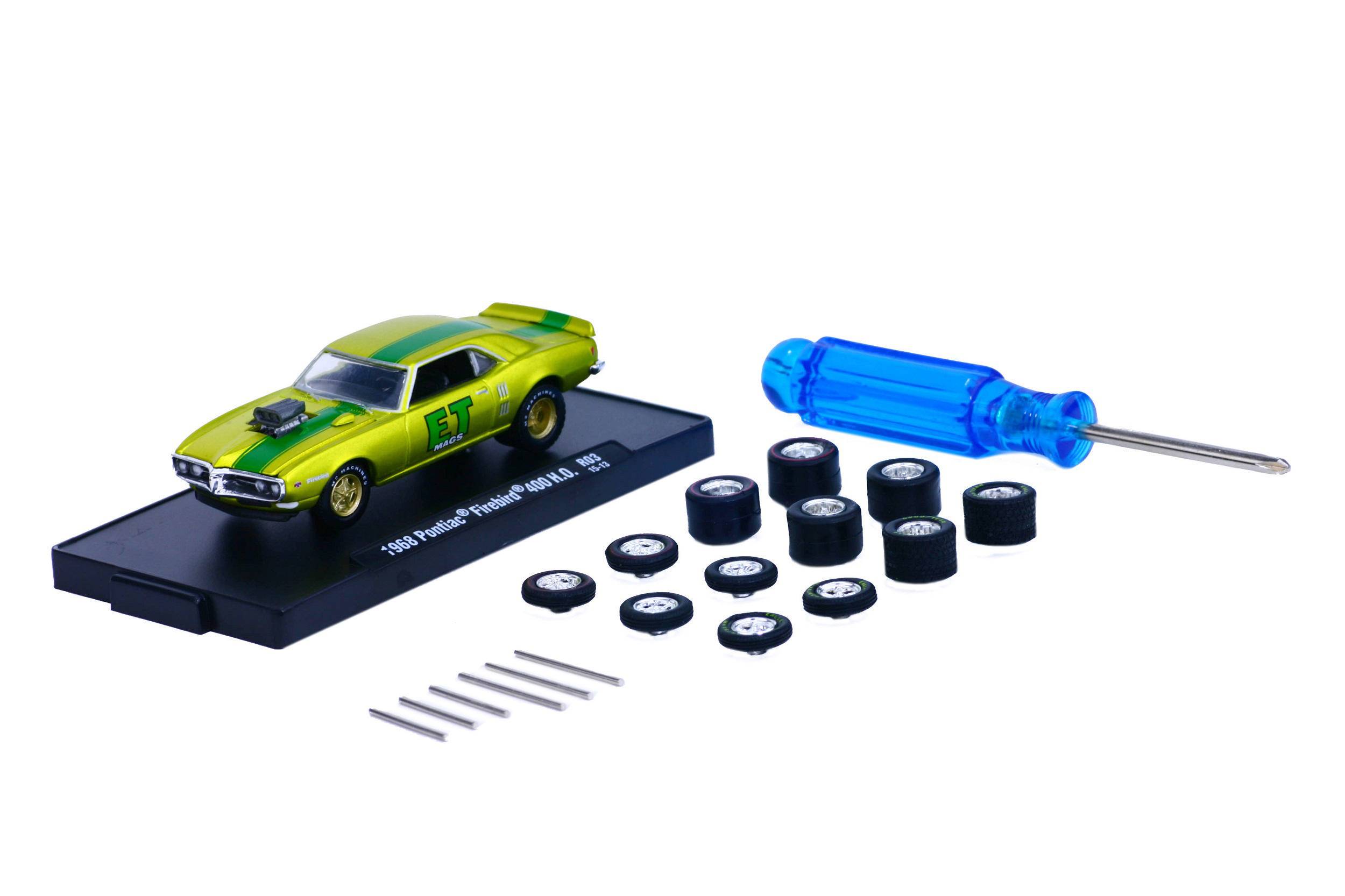 M2 Machines Auto-Wheels 1:64 Scale Diecast Vehicles - Pontiac Firebird 400 H.O. Lemon and Lime Metallic