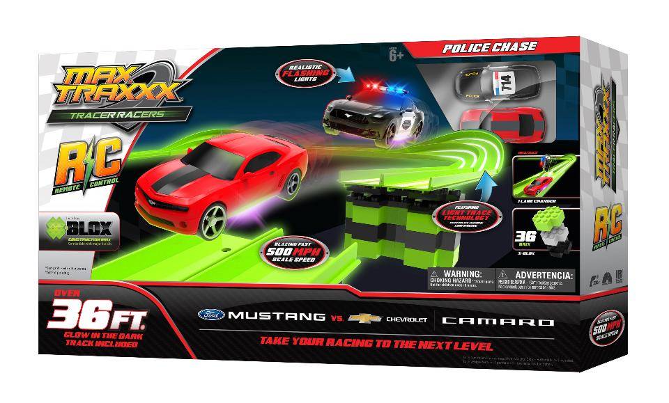 Max Traxxx Tracer Racers Remote Control Police Chase - Ford Mustang vs.Chevrolet Camaro