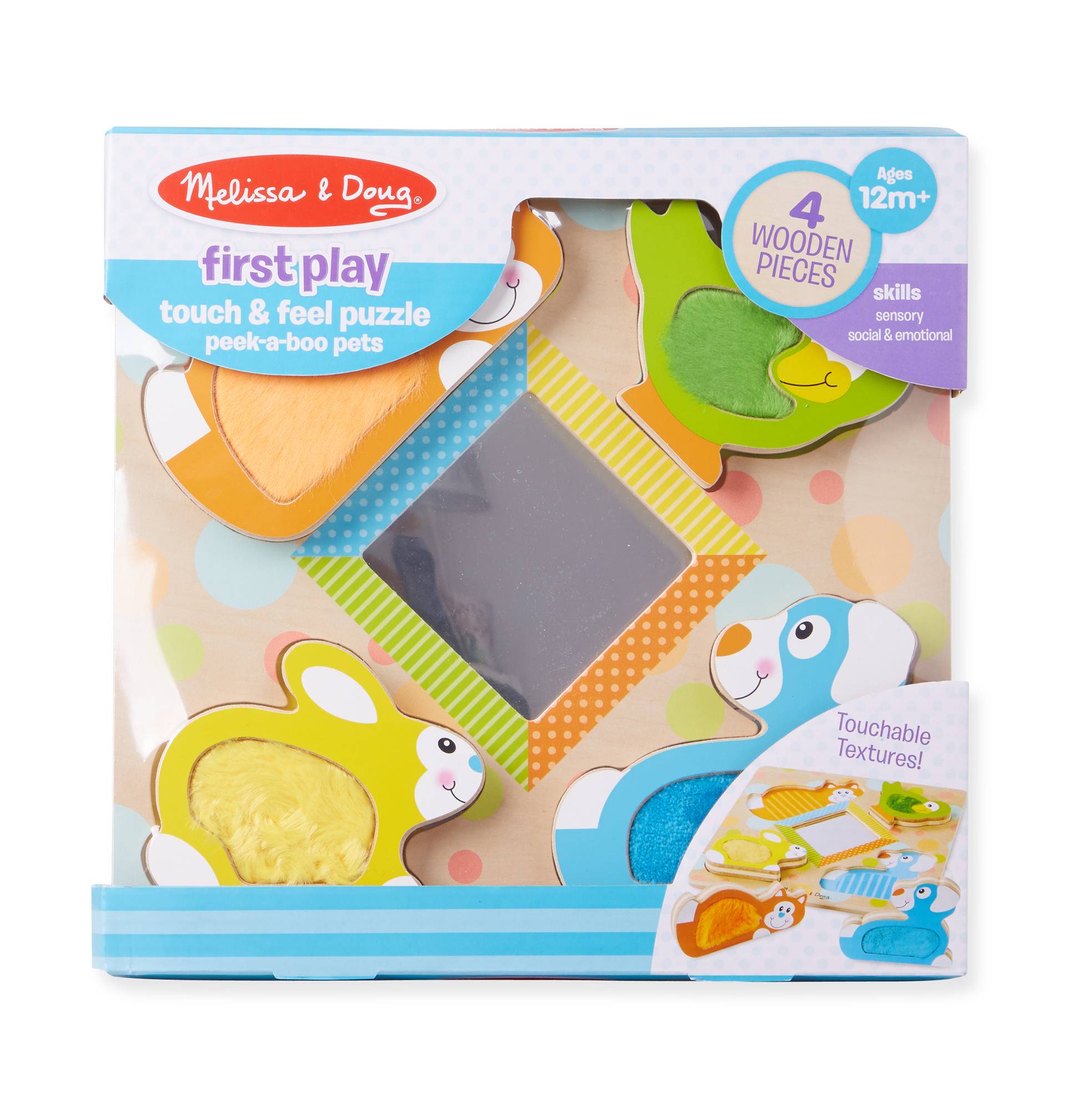 Melissa & Doug First Play Peek-a-Boo Pets Touch and Feel Wooden Puzzle - 4-piece