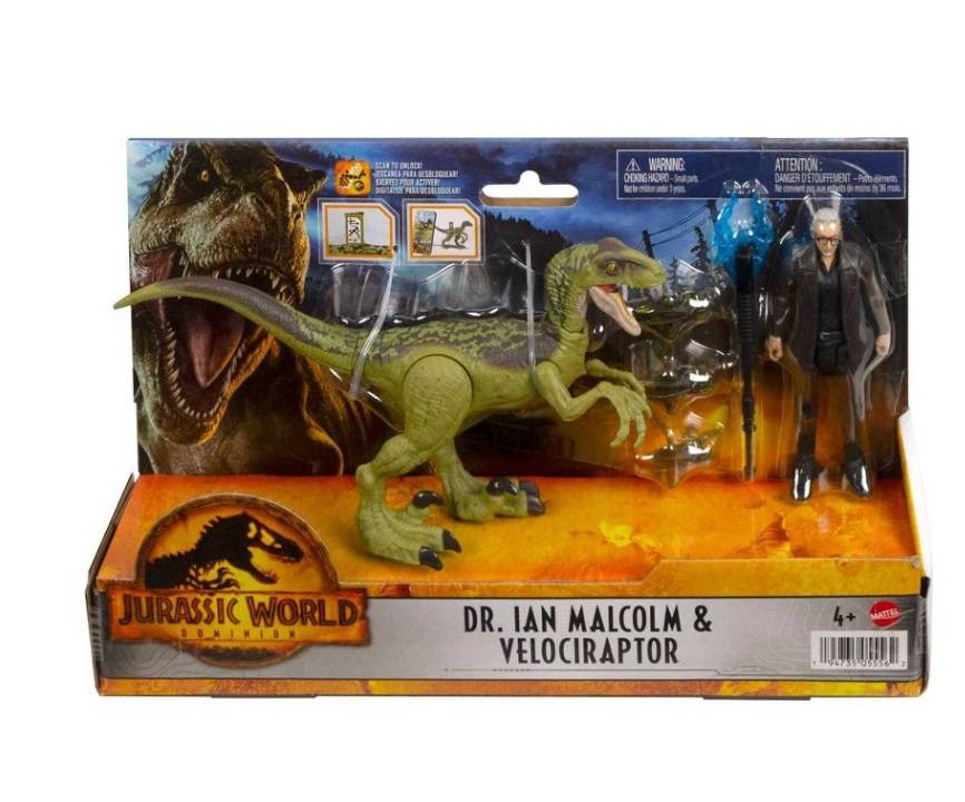 Оригинал Набор фигурок Ян Малкольм и Динозавр Велоцираптор Мир Юрского периода Jurassic Evolution World Dominion