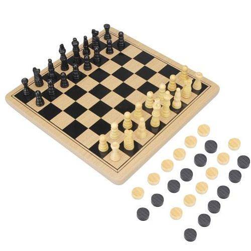 Pavilion Games Wood Chess and Checkers in Tin Set