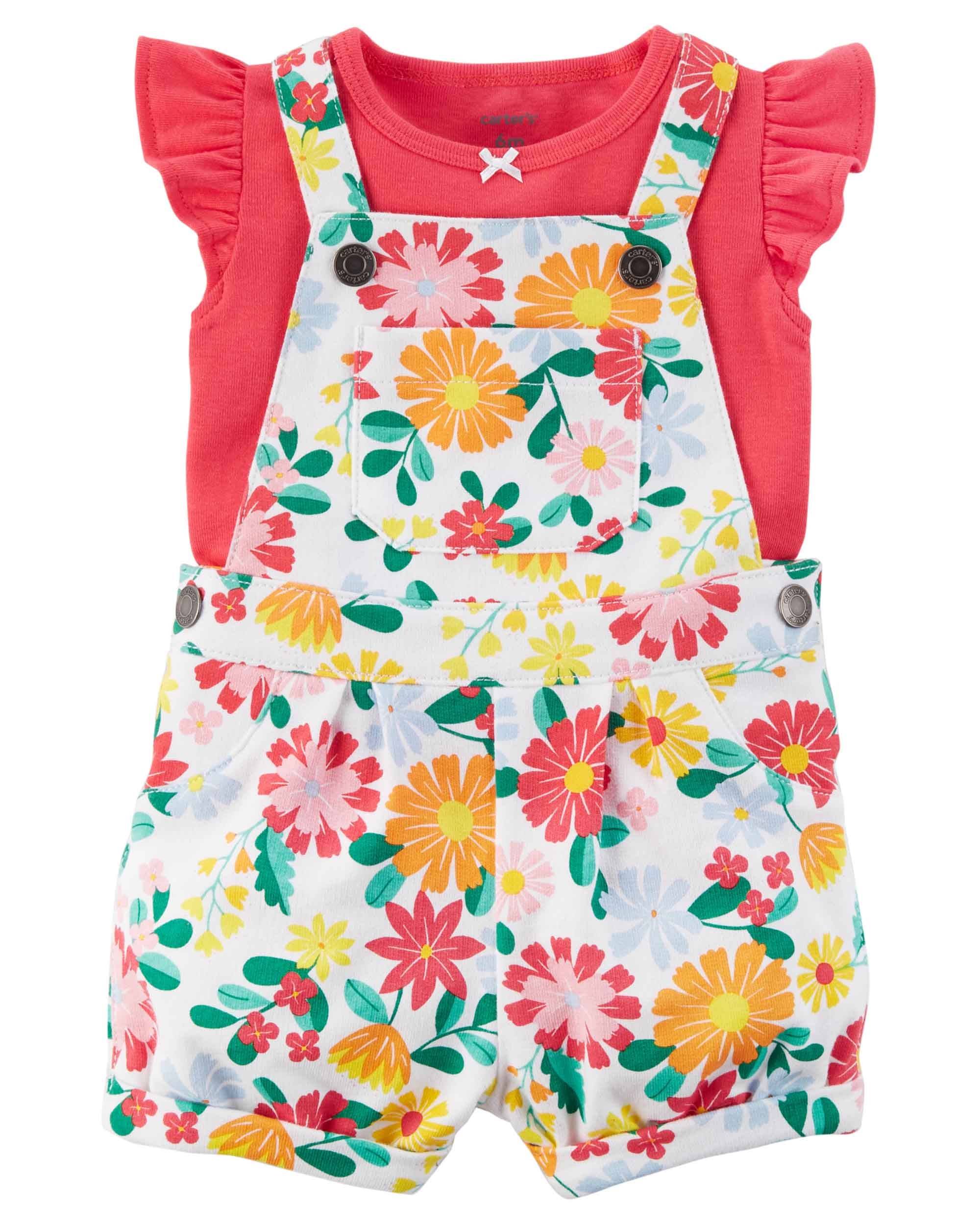 Salopet baby girl Floral Shorts and red Body - set of 2