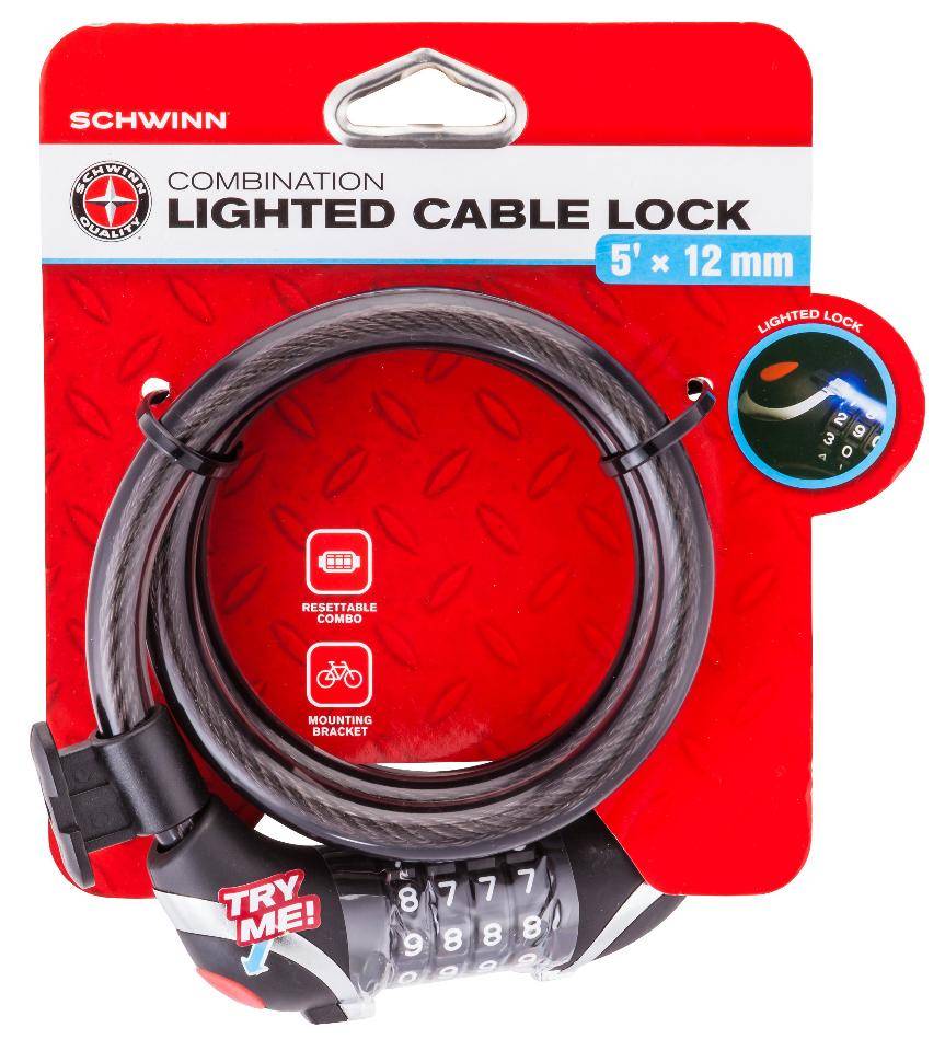 Schwinn Lighted Cable Combo Lock Light - 5 feet x 12 millimeter