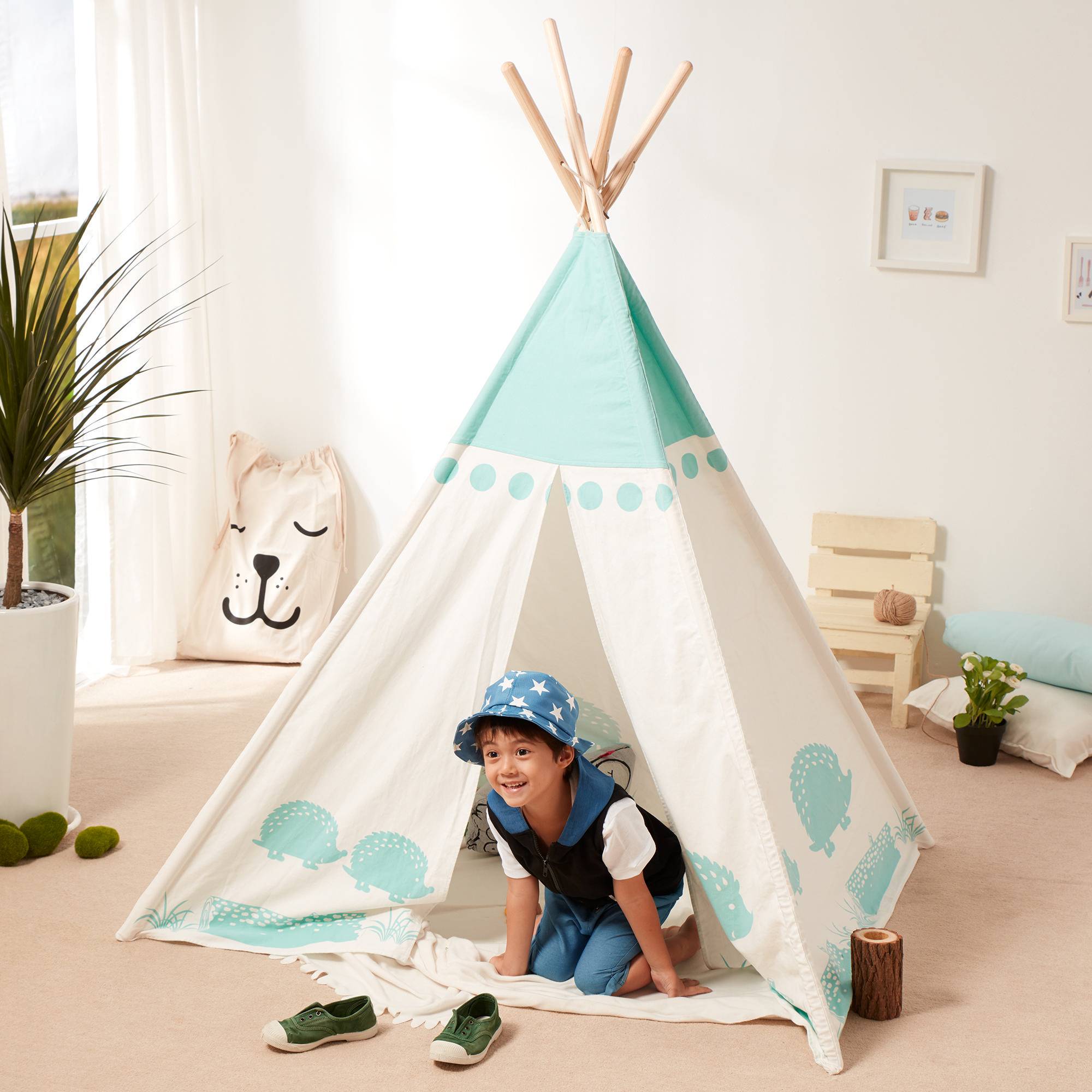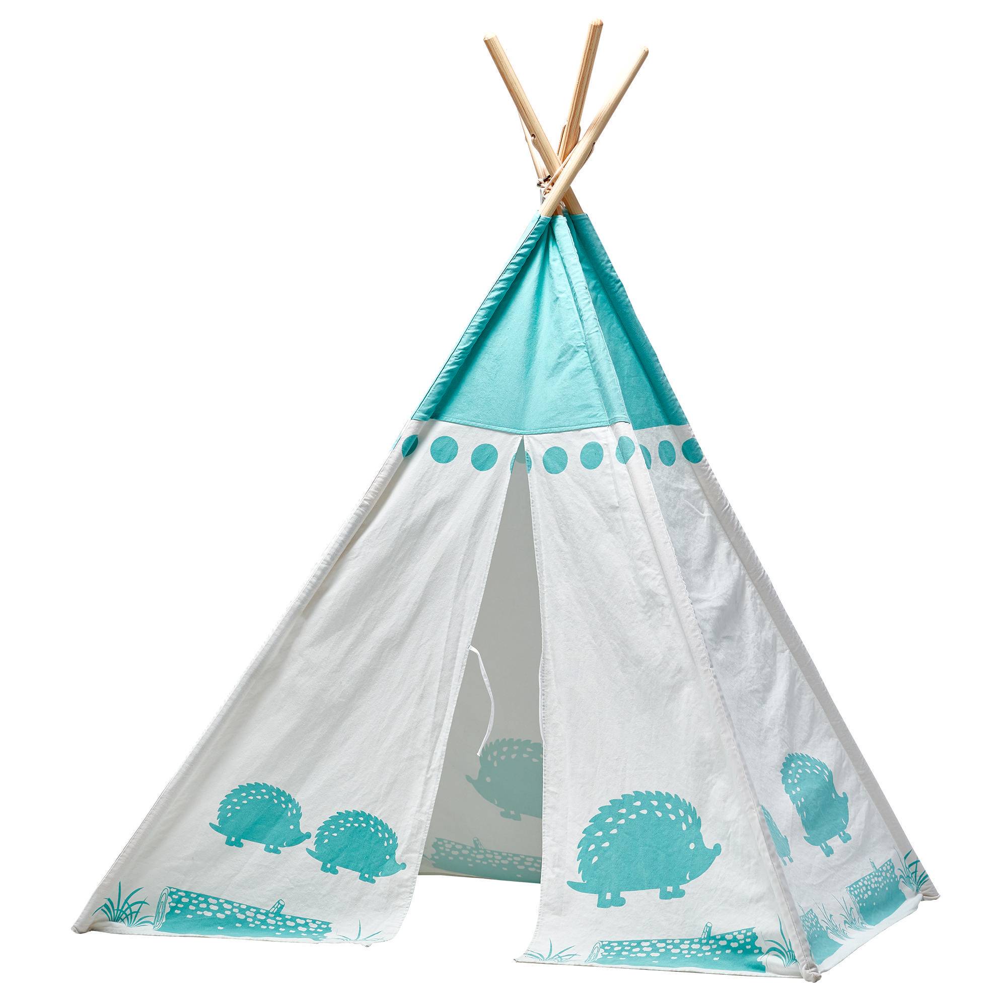 Teamson Kids Cotton Canvas Teepee - White with Green Hedgehog
