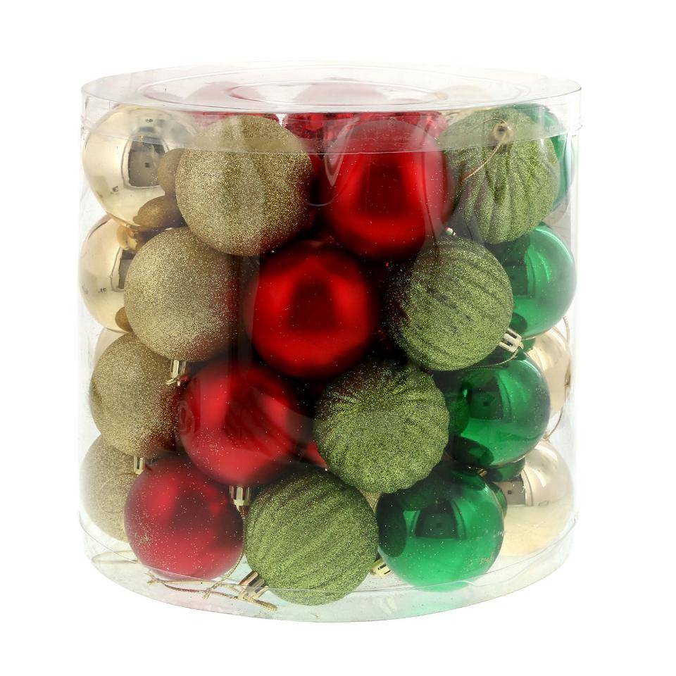 Traditional Holly Christmas Ornament Set - 48 Balls