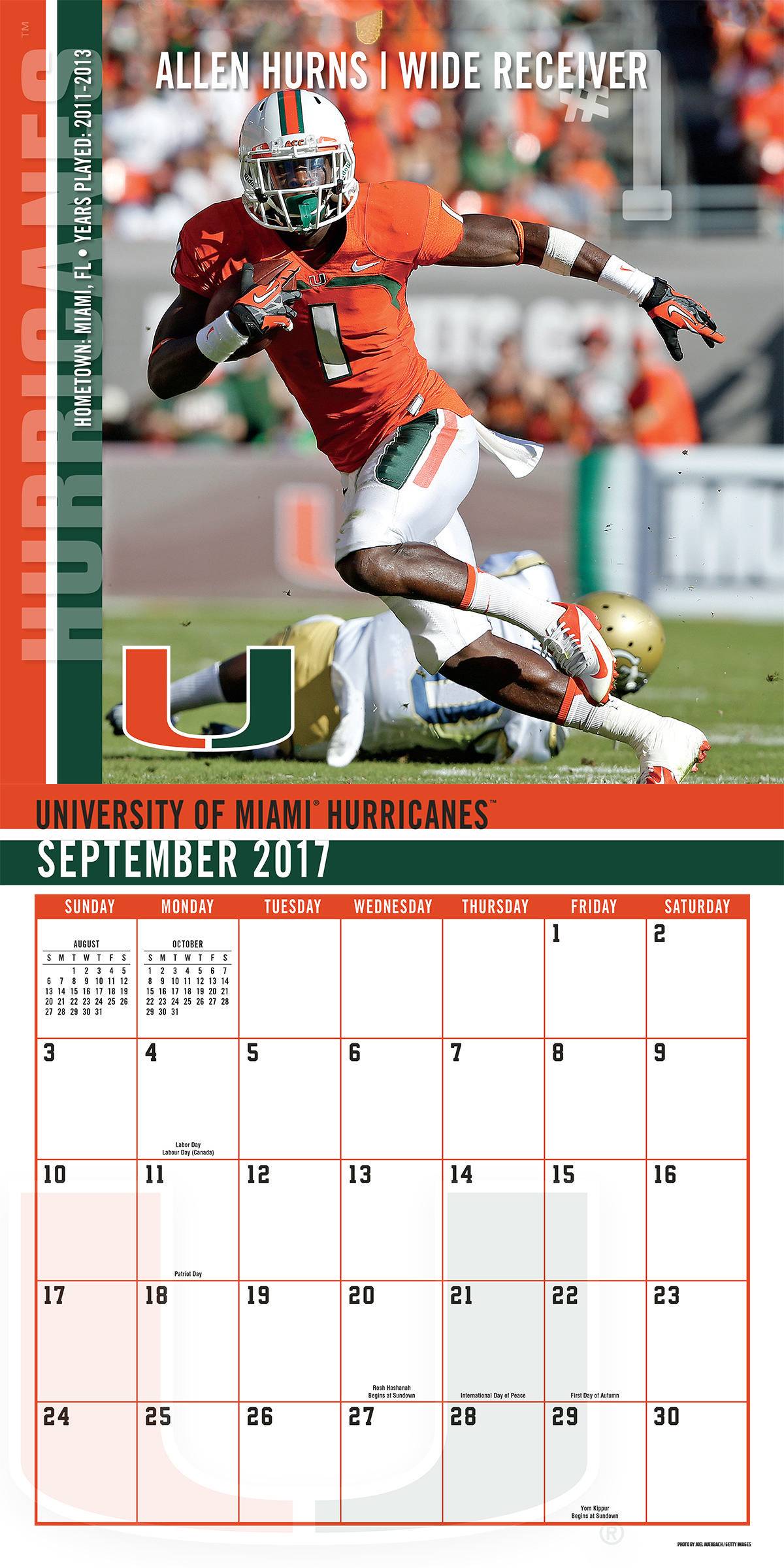 Оригинал Turner 2018 Miami Hurricanes Wall Calendar