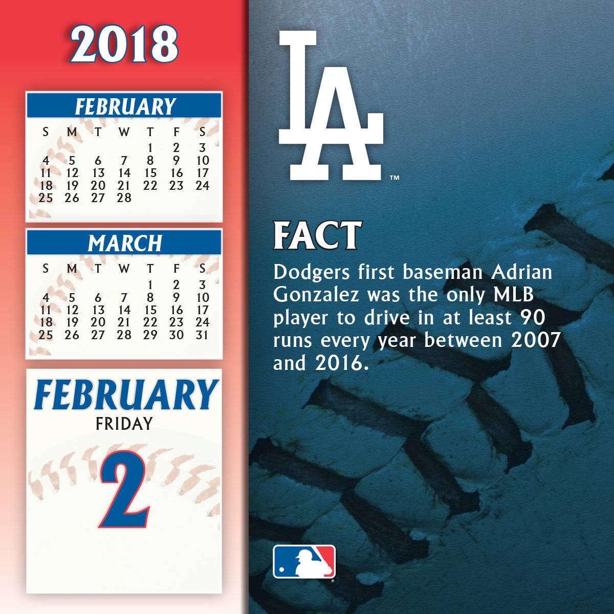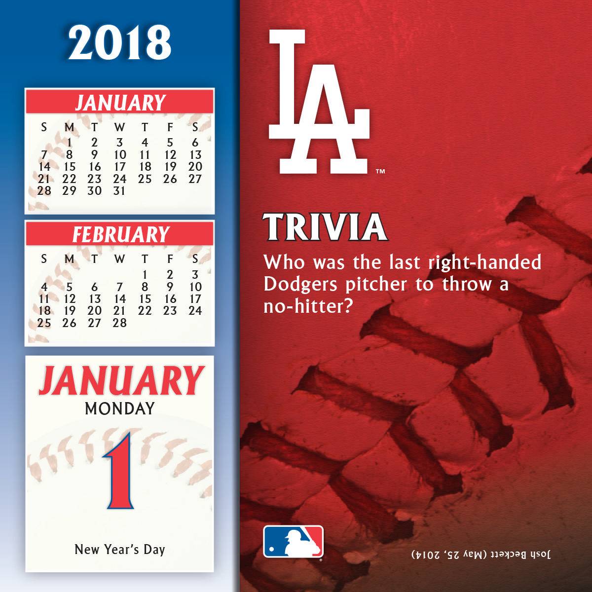 Turner 2018 MLB Los Angeles Dodgers Box Calendar