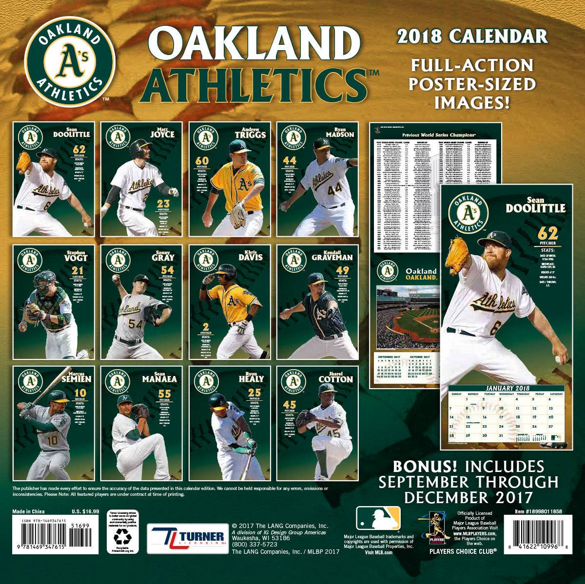 Turner 2018 MLB Oakland Athletics Wall Calendar