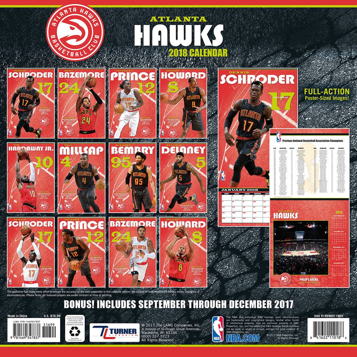 Turner 2018 NBA Atlanta Hawks Wall Calendar