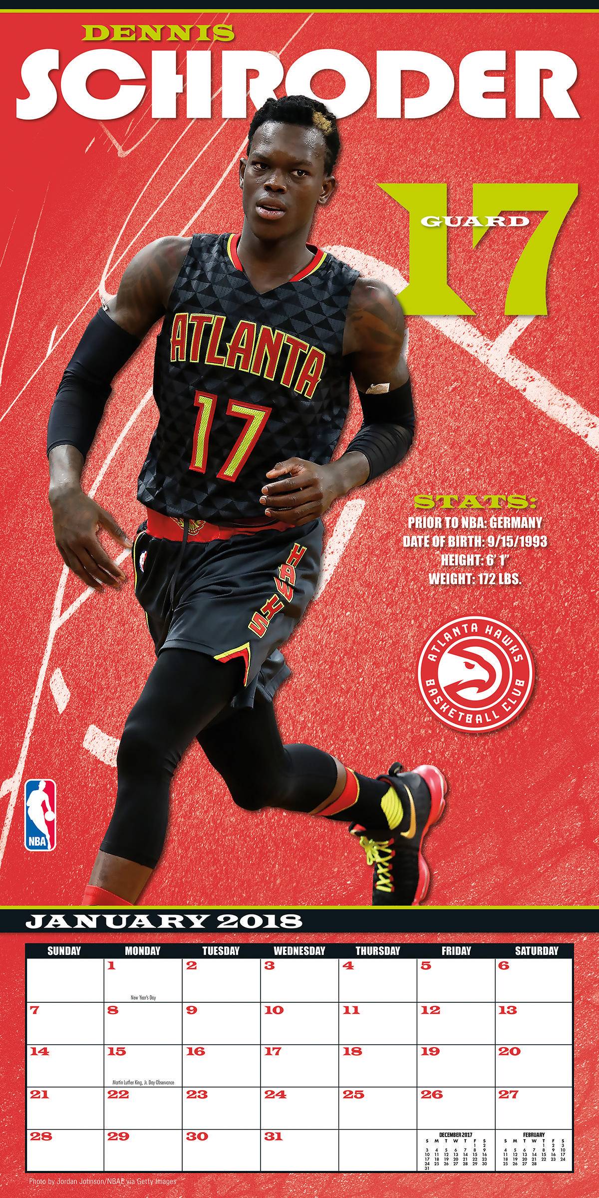 Оригинал Turner 2018 NBA Atlanta Hawks Wall Calendar