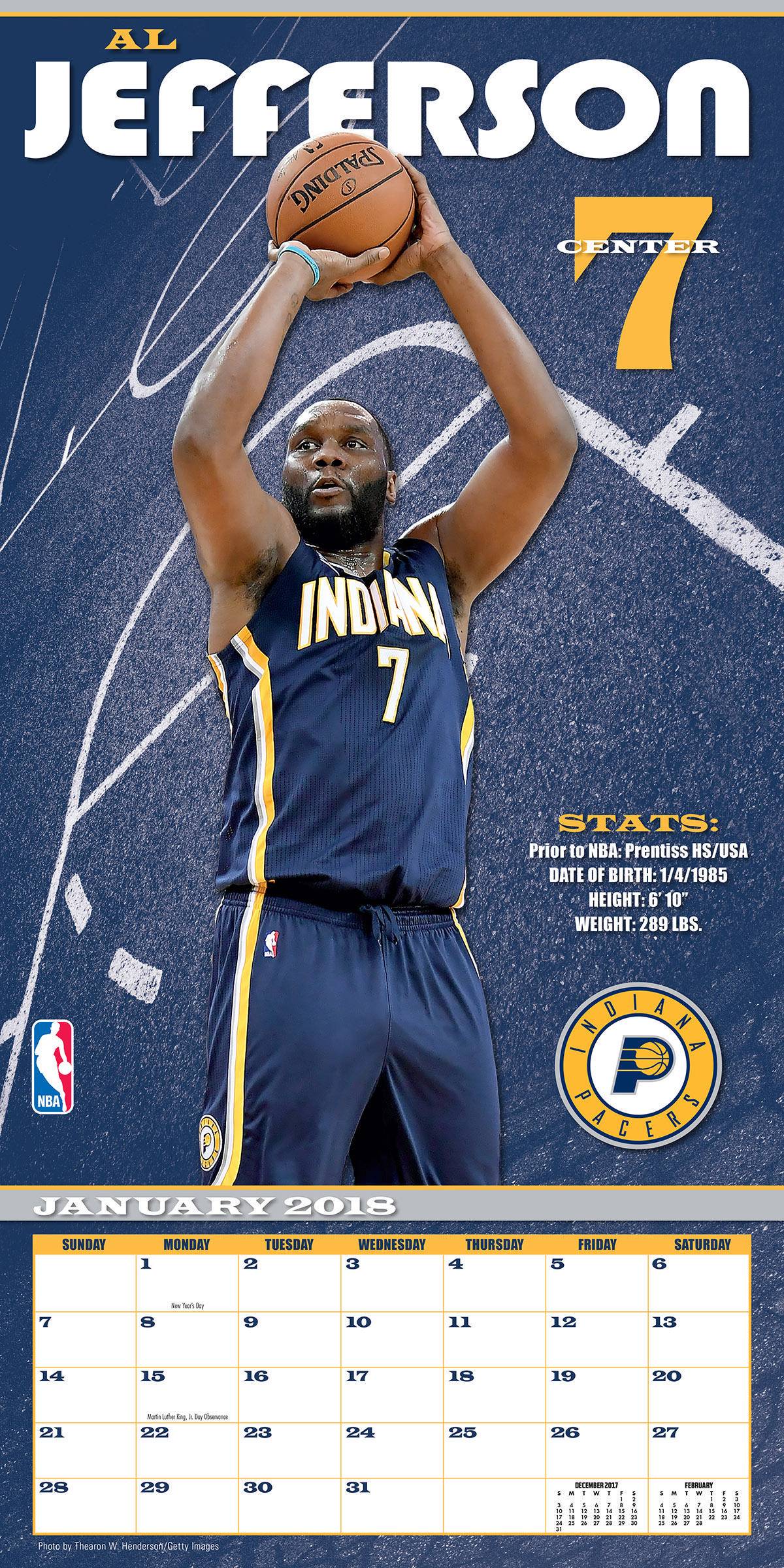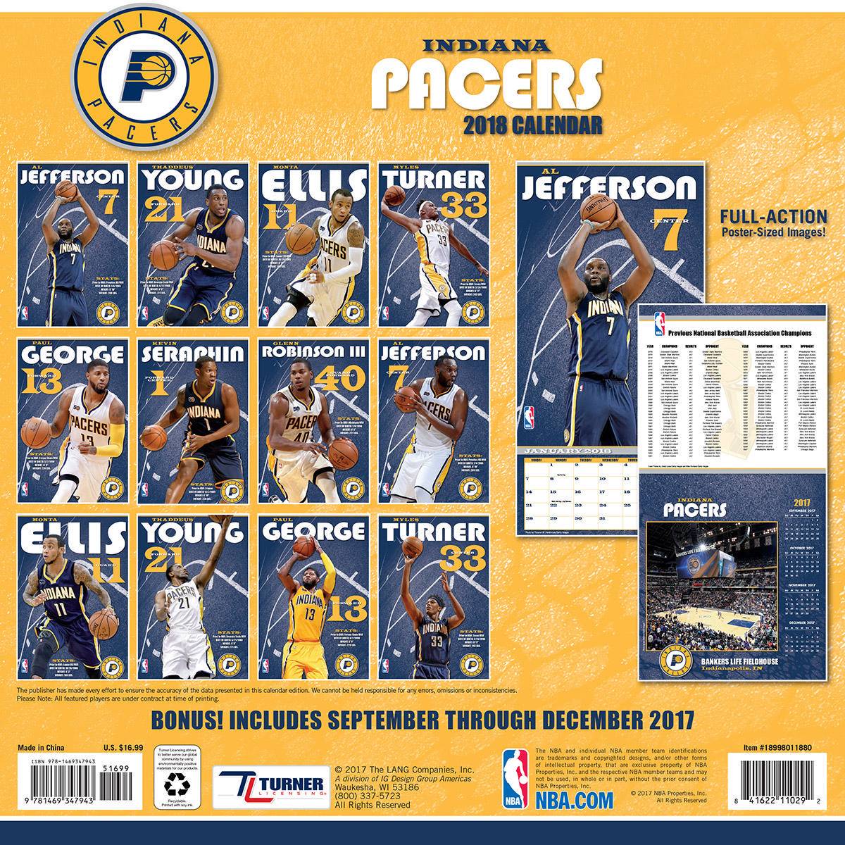 Оригинал Turner 2018 NBA Indiana Pacers Wall Calendar