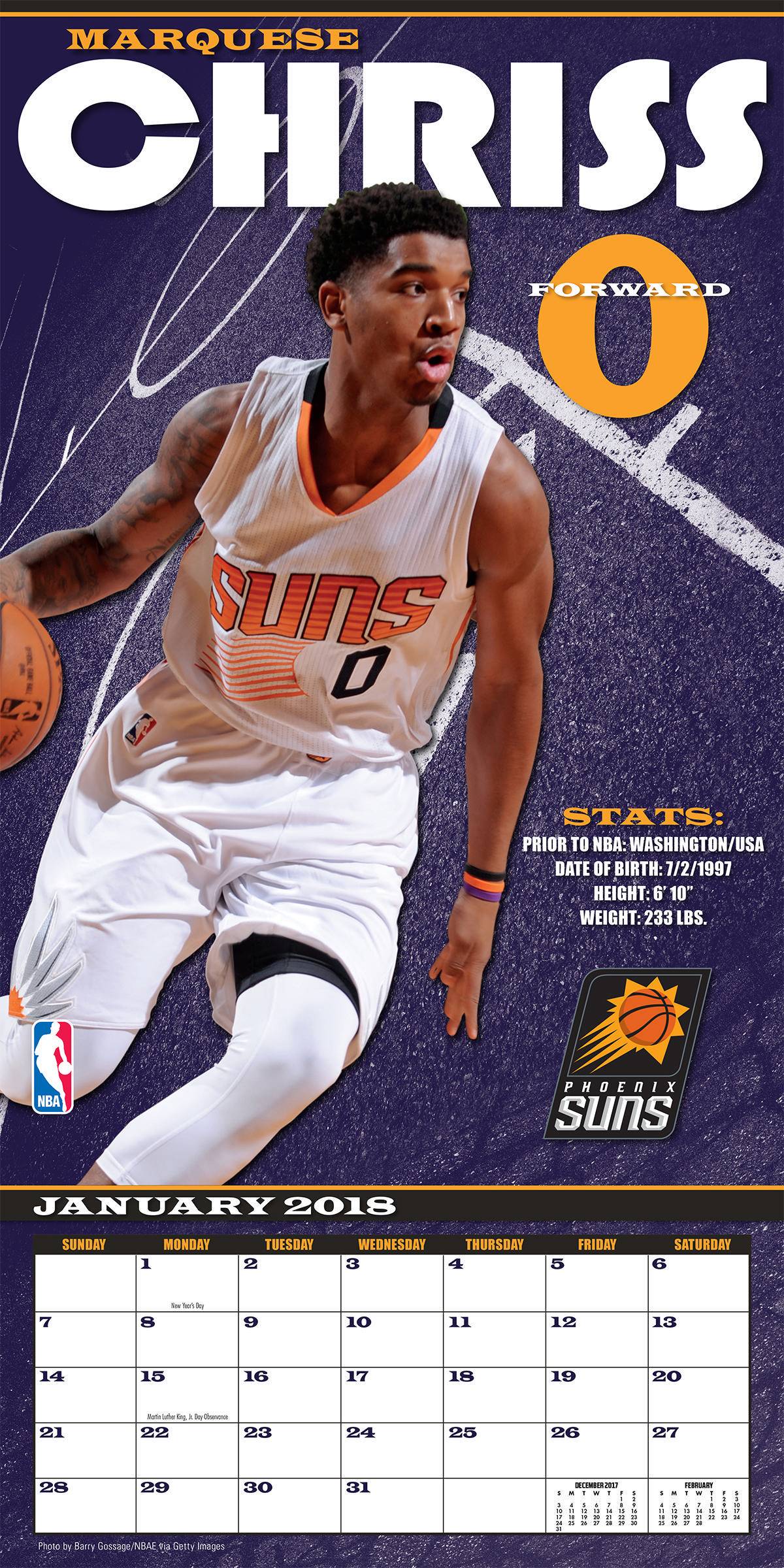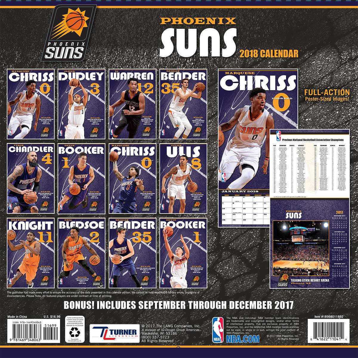 Оригинал Turner 2018 NBA Phoenix Suns Wall Calendar