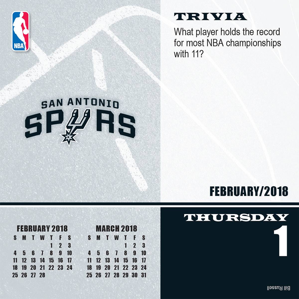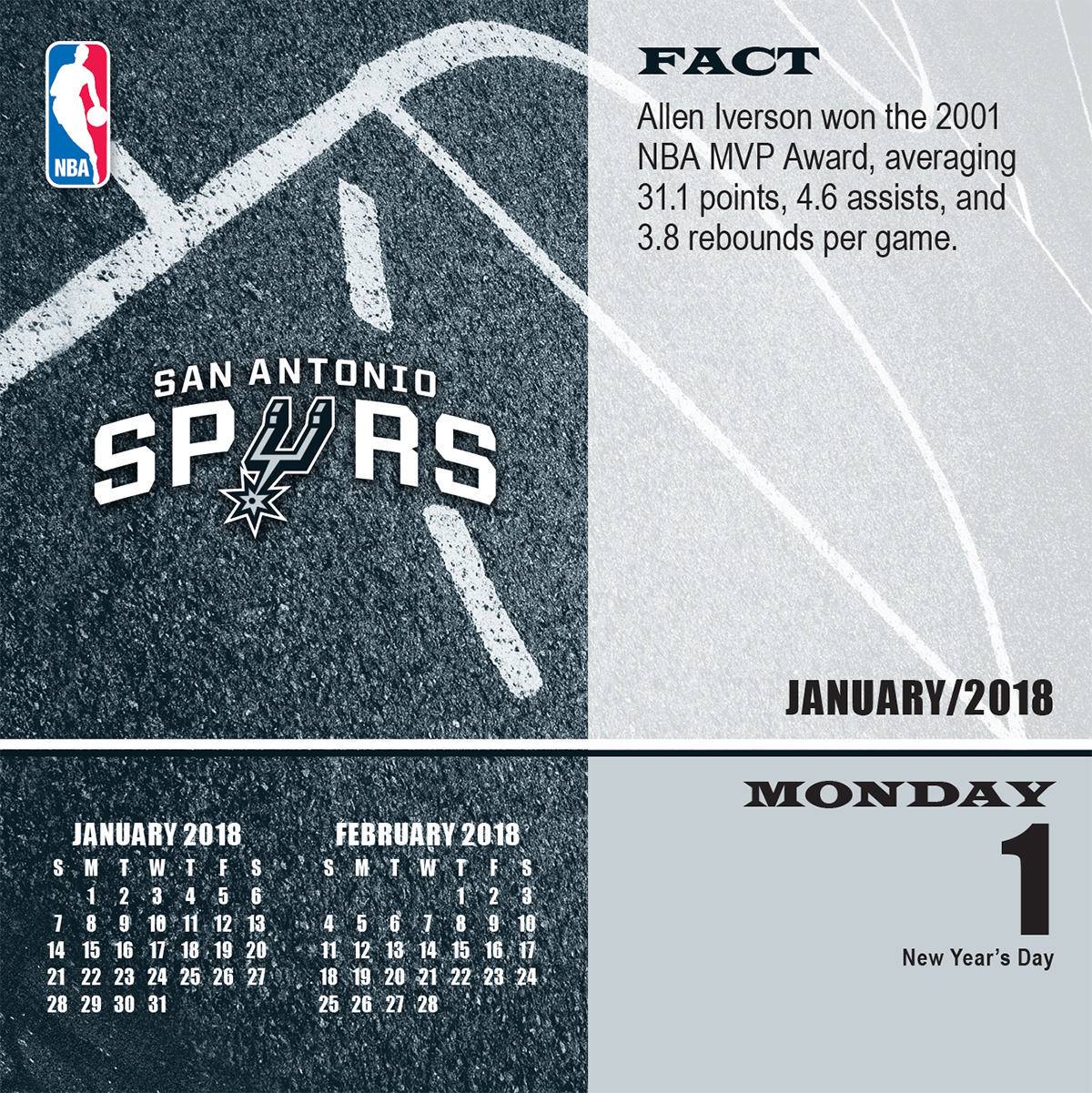 Turner 2018 NBA San Antonio Spurs Box Calendar