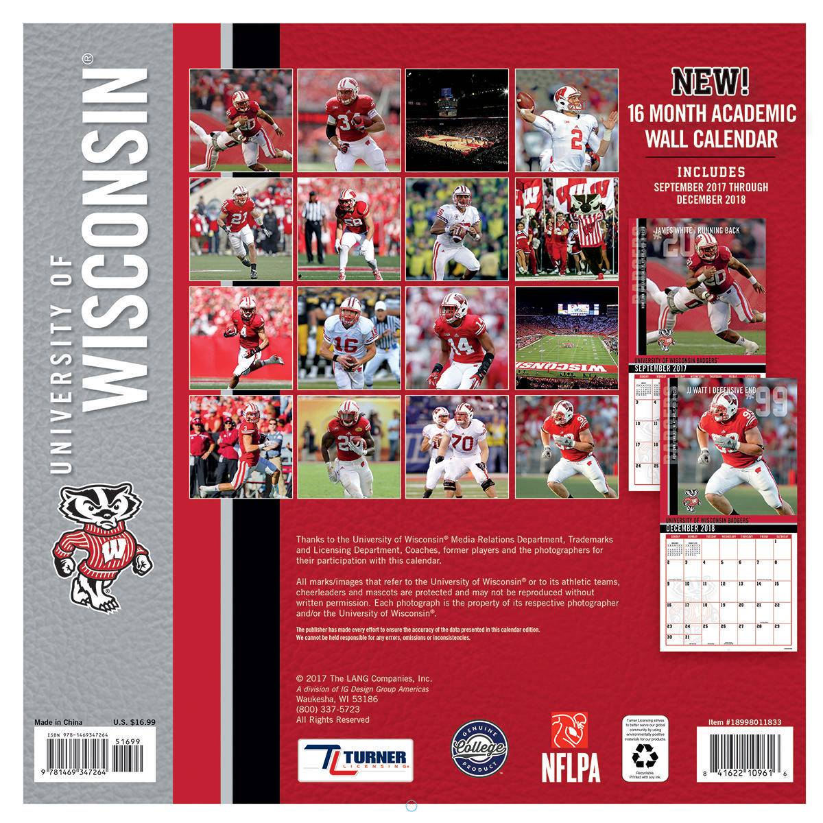 Оригинал Turner 2018 NCAA Wisconsin Badgers Wall Calendar
