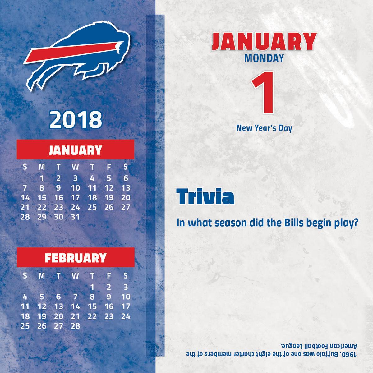 Оригинал Turner 2018 NFL Buffalo Bills Box Calendar