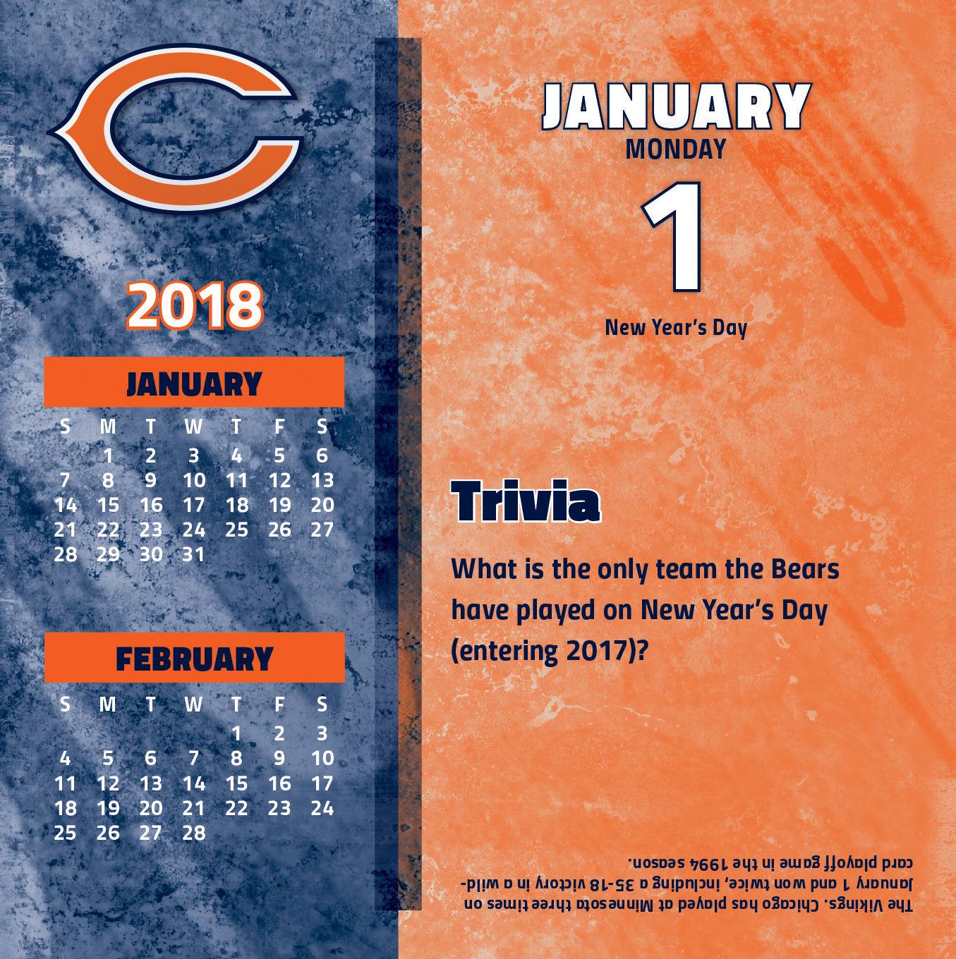 Оригинал Turner 2018 NFL Chicago Bears Box Calendar