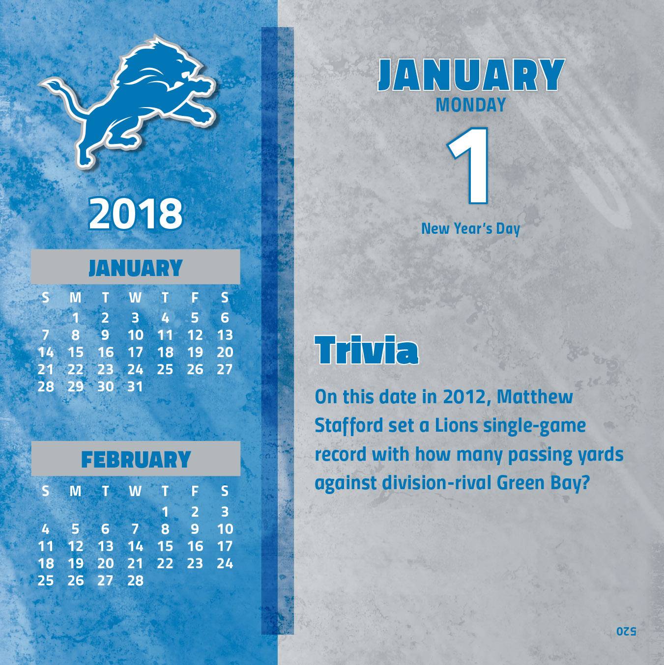 Turner 2018 NFL Detroit Lions Box Calendar