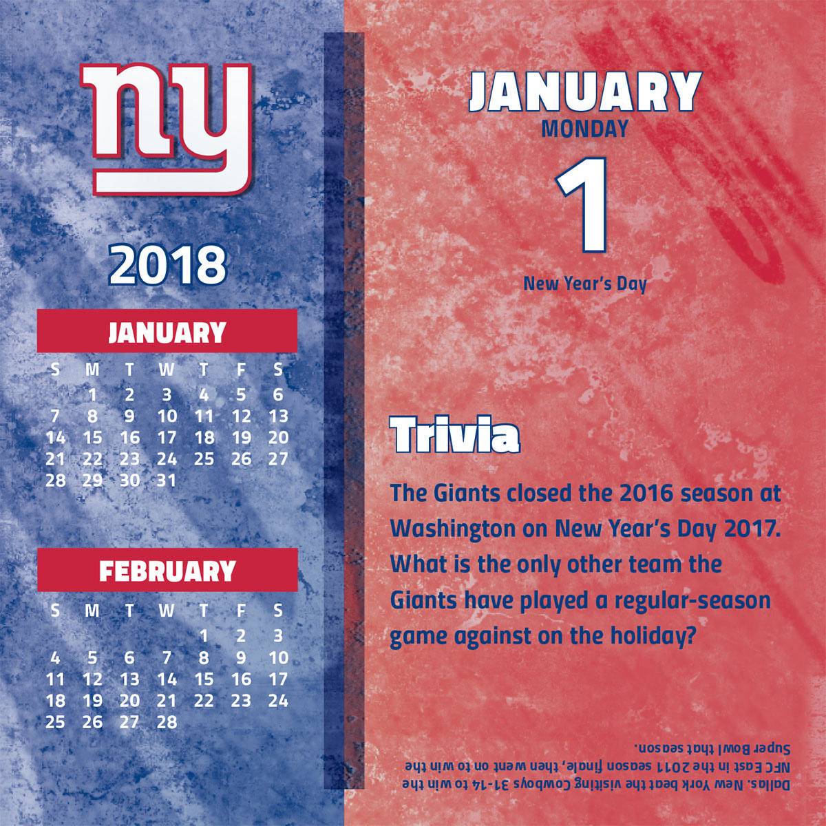 Turner 2018 NFL New York Giants Box Calendar