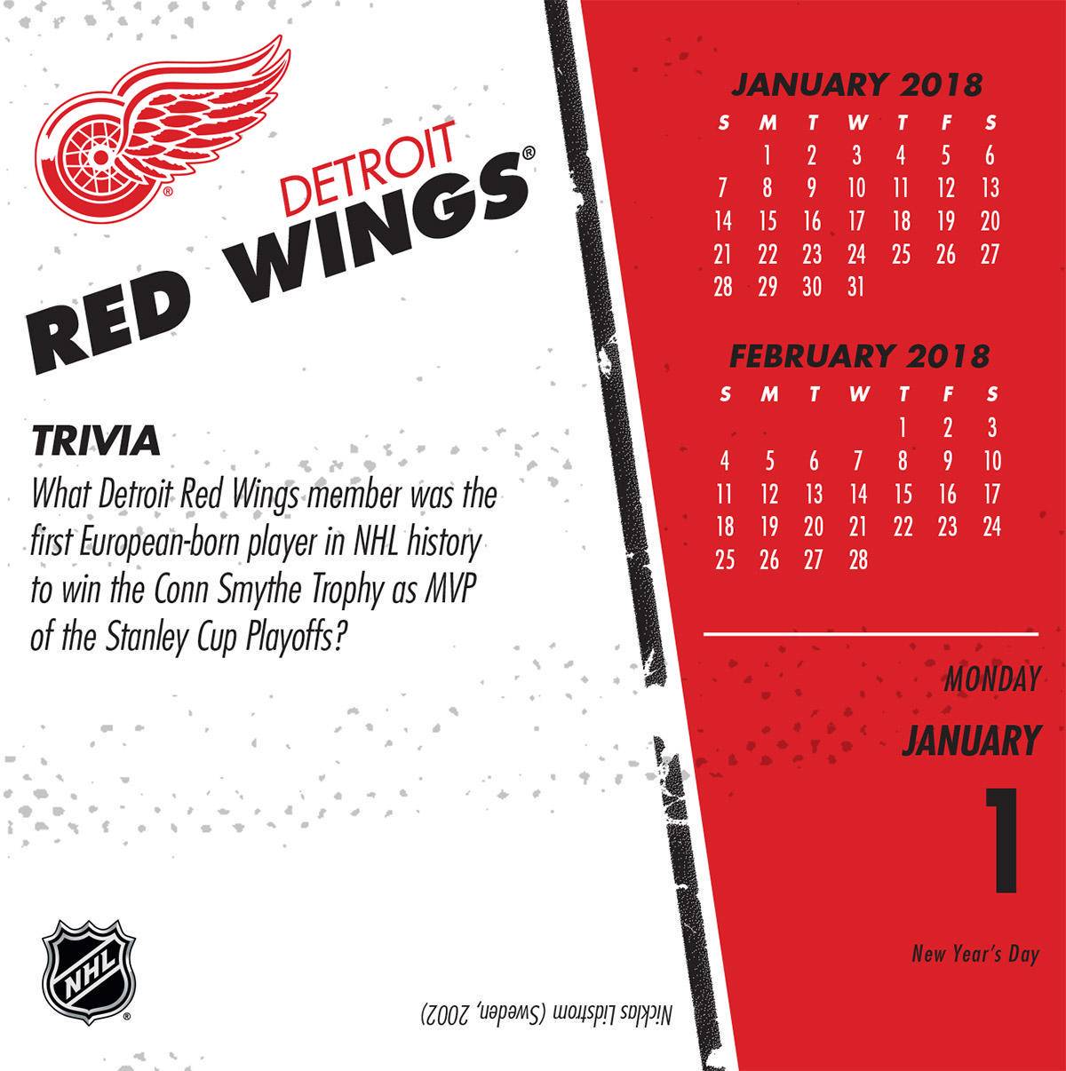 Turner 2018 NHL Detroit Red Wings Box Calendar